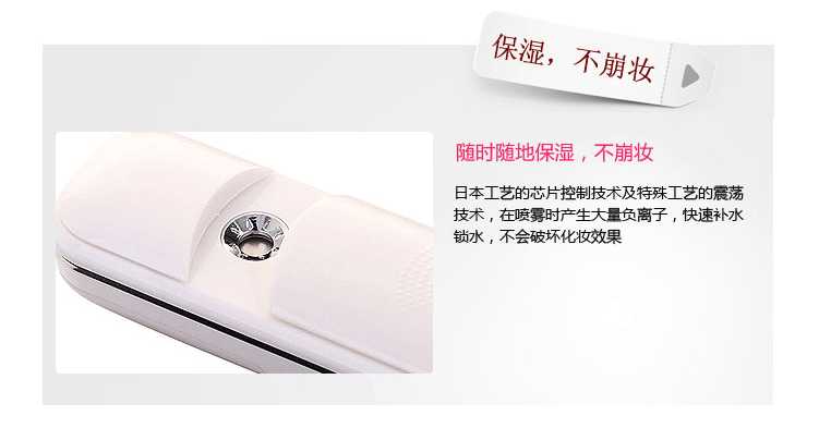 3.这款机子适宜搭配纯净水,蒸馏水,矿泉水,活肤水等清爽液体使用,补水喷雾美容仪是将液体雾化成纳米分子,因此它的喷雾口很细,有的化妆水肉眼看是透明的,其实还是有杂质会堵塞,建议可以稀释后使用!如果喷雾口被化妆水堵塞了,请把化妆水清理干净,用棉签沾取酒精擦拭喷雾口,彻底清洁机器,即可恢复通畅,美容仪不能装粘稠的、油性的、带有颗粒的化妆水!否则会影响机子正常喷雾甚至堵塞!建议装纯净水用,非常舒服~