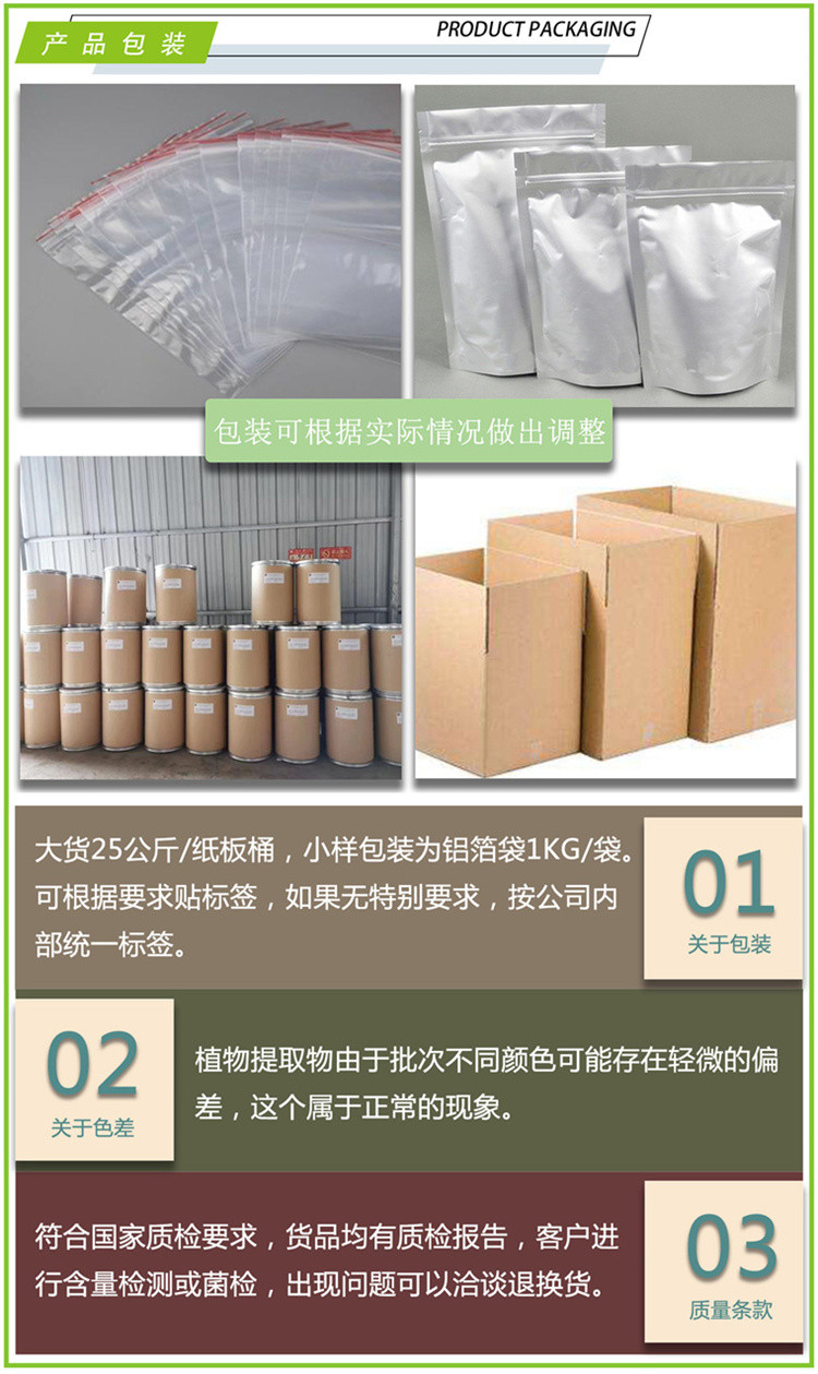 【包装方式】:大货25公斤/纸板桶,小样包装为铝箔袋1KG/袋。可根据要求贴标签,如果无特别要求,按公司内部统一标签。