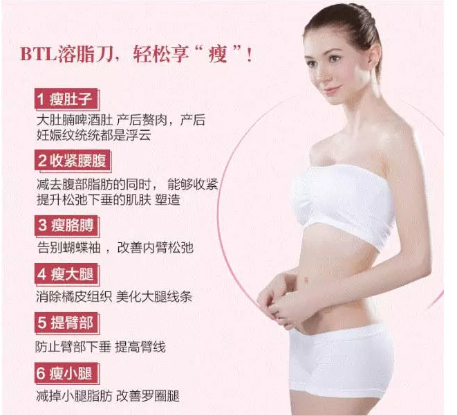 BTL溶脂刀无创无痛、安全可靠、无需恢复期、不会反弹,无任何副作用。