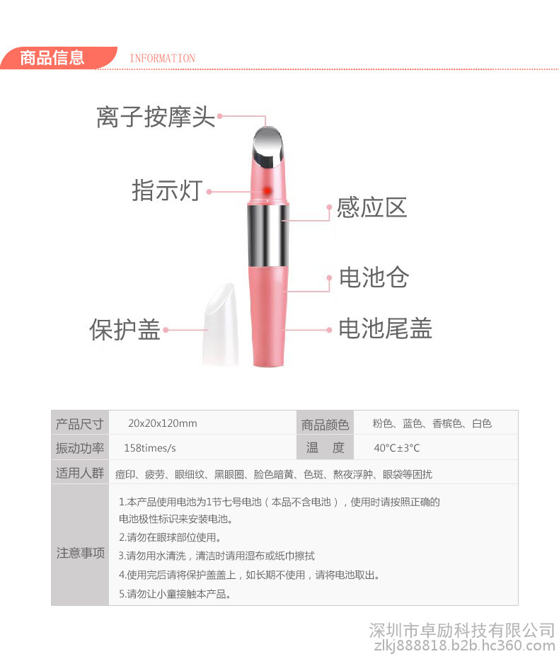 产品简介:恒温发热振动离子导入导出美容仪器眼部美容仪