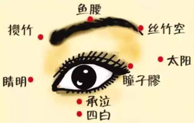第六,用两手的拇指和食指按丝竹空穴和瞳子髎穴,吸气时按着不动,呼气时按揉。......................................................................................