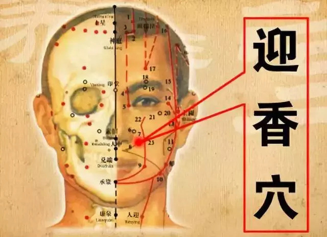 两个拇指点着迎香穴,吸气时,揉动一侧鼻腔,揉完使劲呼气,然后换另一侧。