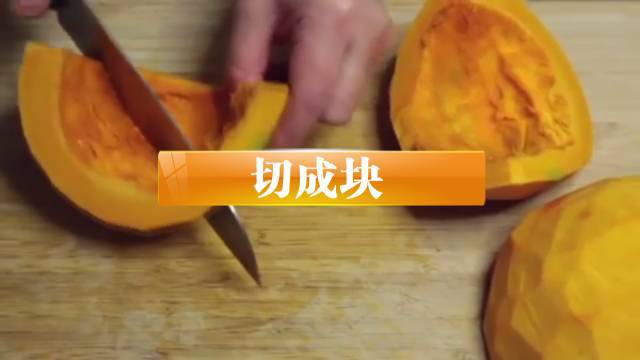 把南瓜一切为二,去瓜子。然后去皮切块。