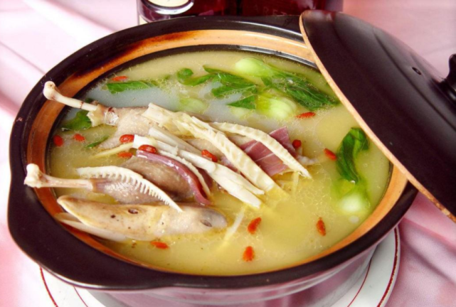 功效:冬笋是一种高蛋白、低淀粉食品,对肥胖症、冠心病、高血压、糖尿病和动脉硬化等患者有一定的食疗作用。冬笋老鸭汤清香鲜美,且有滋阴补血之效。
