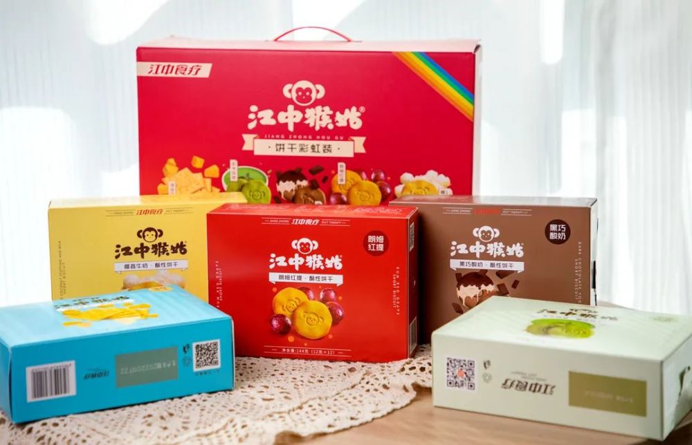 以前的猴姑饼干只有原味,现在江中升级生产了两款彩虹礼盒装。