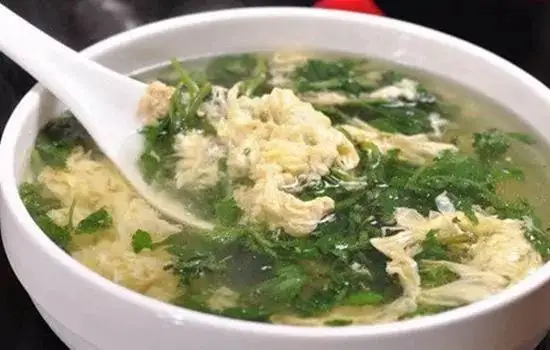 新鲜艾草60克,鸡蛋1个,白糖适量。将艾叶加水适量煮汤,打入鸡蛋煮熟,放白糖溶化即成。有温经散寒、调经安胎的作用。