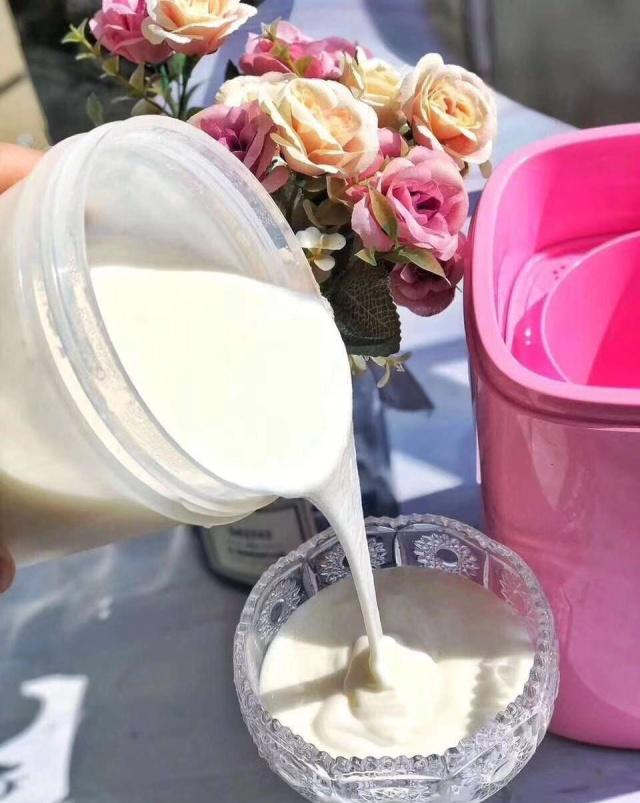 做法:酸奶机清洗干净用开水冲烫,自然晾干后,倒入牛奶,发酵放入,与牛奶搅混合均匀。