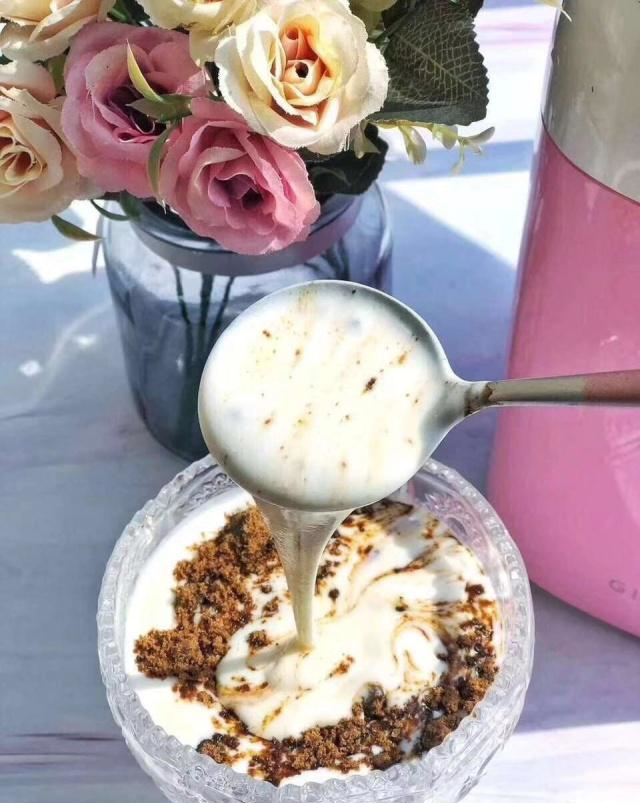 刚做好的酸奶温温热热的,立即食用特别舒服,也可以放冰箱冷藏。根据个人的喜好或者不同口味加入白砂糖、蜂蜜。