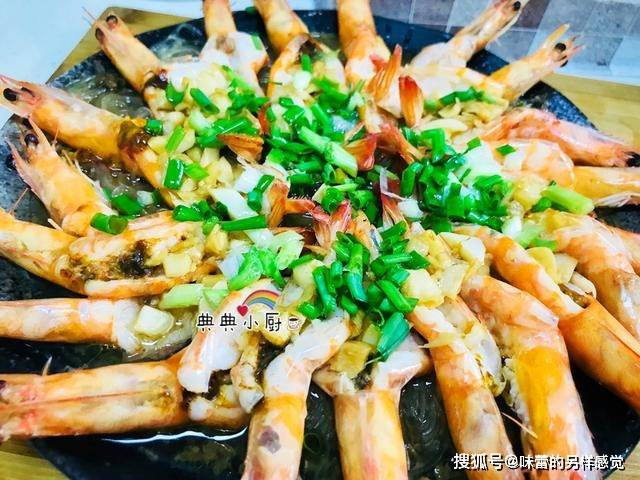 蒜蓉粉丝蒸虾。食材买回来之后,先取出一点儿粉丝,加温水泡起来备用。粉丝最好选用细粉丝,当然没什么讲究,只是摆起来好看罢了。鲜虾洗净,剪去所有的须脚,用剪刀把背部打开取出虾线。再用刀背在虾身上轻剁几下。这个过程有点儿累,耐心一点儿。粉丝泡好之后,用剪刀剪两段,铺在盘底,再把开背虾平铺在粉丝表面摆好。我这个是多了点,少一点的话会更好看。锅里放油,倒放入蒜蓉炒出香味,再加点蚝油,生抽,糖和开水,所以料烧开后就是等下蒸虾所需要的蒜蓉汁了。将烧好的蒜蓉汁,用汤匙一一地浇在虾的开背处,和粉丝上。记得要在虾背处多放一点儿!蒸锅里加水,等水烧开水后(上汽),将摆好的虾盘放入里面,加锅盖中火蒸5分钟。取出后撒上香葱碎,锅里再烧一点儿油,乘热浇在香葱碎的表面即可食用了。