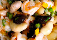 主料:南美白虾12个、菱角米100克、杂蔬粒50克、黑木耳(泡发)25克辅料:色拉油、料酒、白胡椒粉、盐、葱花、香油各适量
