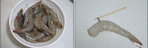 2.在第三节挑虾线,去头去壳留虾尾。