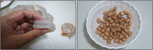 4.花生米洗净水泡后晾干油炸,或直接买来炸好的备用。