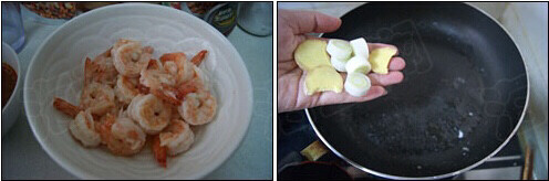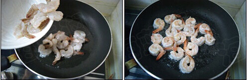 9.锅里烧热油,倒入虾。