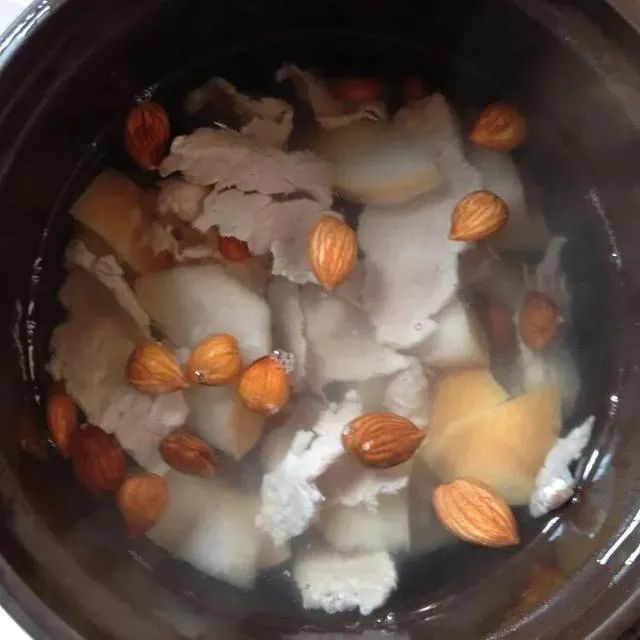 材料:南杏15克、北杏10克、火麻仁30g、陈皮15克、瘦肉500g、蜜枣3个、生姜3片。