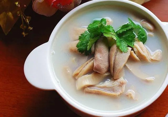 3.将上述食材放入加水的锅中,大火煮开后转小火再煲汤1.5小时即可,再加盐适量调味后饮汤,吃猪肚。