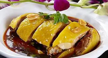 制法: 清水1000~1500毫升,加入一半陈皮及姜、葱、花椒、盐少量,把洗净的鸡放入煮至六成熟,捞出。卤汁入锅,烧沸,再入鸡,用文火煮熟,捞出待用。锅内留卤汁少许,放入10~30克冰糖及少许味精、盐收成汁,涂抹在鸡表面上。菜油入锅内,烧熟,另一半陈皮,切丝炸酥。将鸡倒提,用热油反复淋烫至颜色红亮为度,再往鸡的表面抹上麻油,然后切成小块装盘,撒上炸酥的陈皮丝即成。