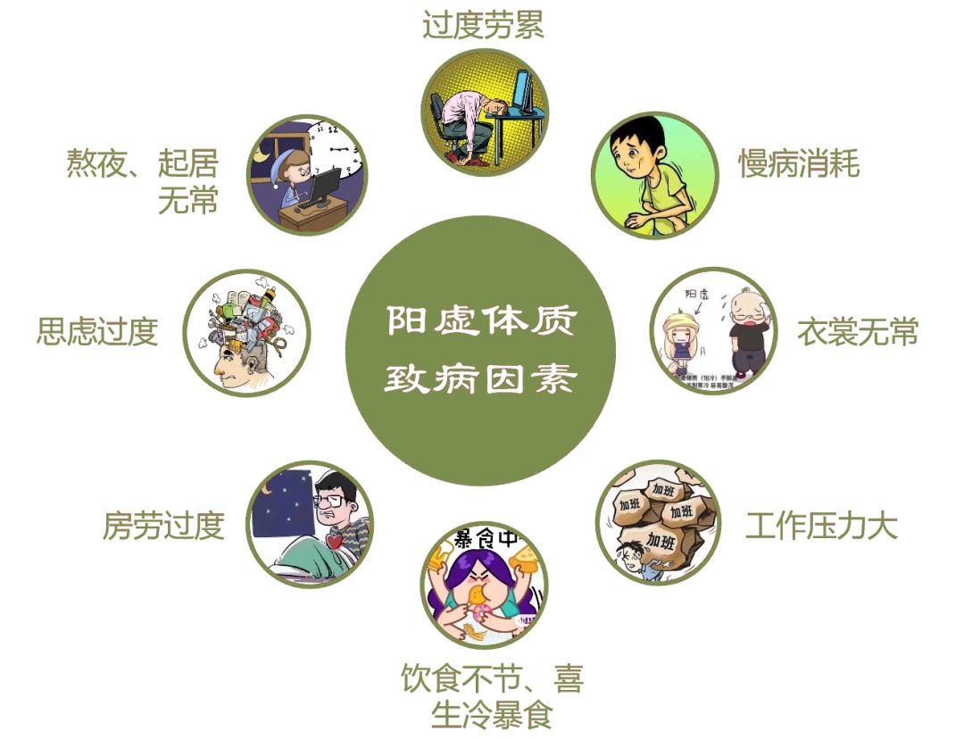存在1-2种情况,属轻度阳虚体质;存在3-5种情况,属中度阳虚体质,存在5种情况以上,属重度阳虚体质。