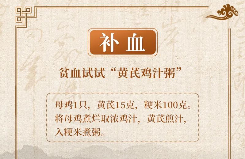 推荐一款居家调理药膳黄芪鸡汁粥。母鸡1只,黄芪15克,粳米100克。将母鸡煮烂取浓缩鸡汁,黄芪煎汁,入粳米煮粥,早晚趁热服用。