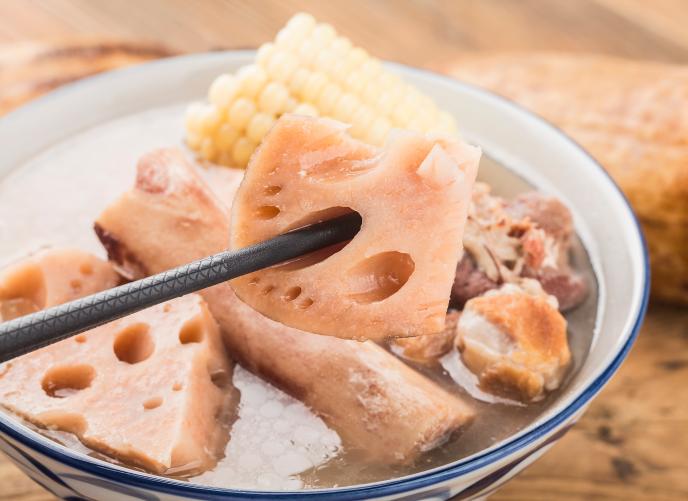 新鲜甘甜的莲藕具有清热凉血的功效,对于肺热咳嗽有缓解作用。莲藕煮熟之后其性由凉转温,具有健脾养胃的功效,对于消化不良或食欲不振的人群都有养生价值。搭配温补的排骨一起炖汤,不仅味道鲜美,而且能强健骨骼和脾胃,对呼吸系统的健康也是非常有益的。