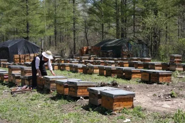 ▲长白山原始森林中的蜂场中忙碌的老赵