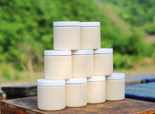 它是完全固态的、乳白色、凝如羊脂,只有长白山椴树蜜才做得到。平常蜂蜜结晶大家也都见过,但这瓶绝对不是您看到的,它细腻到像您平时涂在脸上的雪花膏,花香四溢,吃上一口,就会再也忘不了。