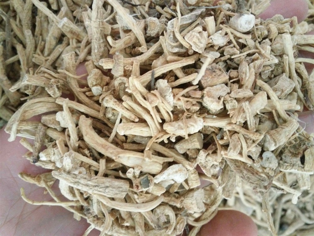 [性 状]:本品呈纺锤形、圆柱形或圆锥形,长3~12cm,直径0.8~2cm。表面浅黄褐色或黄白色,可见横向环纹及线状皮孔,并有细密浅纵皱纹及须根痕。主根中下部有一至数条侧根;多已折断。有的上端有根茎(芦头),环节明显,茎痕(芦碗)圆形或半圆形具不定根疔或已折断。体重,质坚实,不易折断,断面平坦,浅黄白色,略显粉性,皮部可见黄棕色点状树脂道,形成层环纹棕黄色,本部略呈放射状纹理。气微而特异,味微苦、甘。
