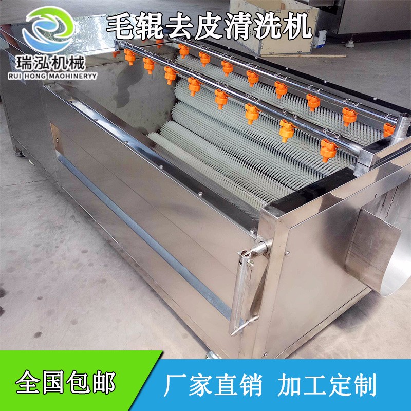 药材毛辊清洗机接触食品部分均采用不锈钢SUS304/2B材料制作,完全符合出口食品卫生要求。采用毛刷原理广泛适用于根茎类药材清洗,贝壳类海鲜清洗,圆形、椭圆形果蔬比如生姜、胡萝卜、山芋、马铃薯、红薯、猕猴桃等根茎类蔬菜的清洗、脱皮。该机具有外形美观和操作方便,清洗脱皮容积大、效率高,耗能小,可连续清洗,操作简单,使用寿命长等特点,刷辊材料经特殊工艺处理(采用尼龙线绳轧制而成),经久耐用,耐磨性能好。箱体采用**不锈钢材质,不锈蚀、清洁卫生。药材清洗机可根据客户要求定制。毛辊清洗机是以高压风机风力或水泵的压力使水产生强烈搅拌运动,使物料在水中翻滚,利用毛辊转动及高压喷淋相互结合,从而达到清洗的专用效果。