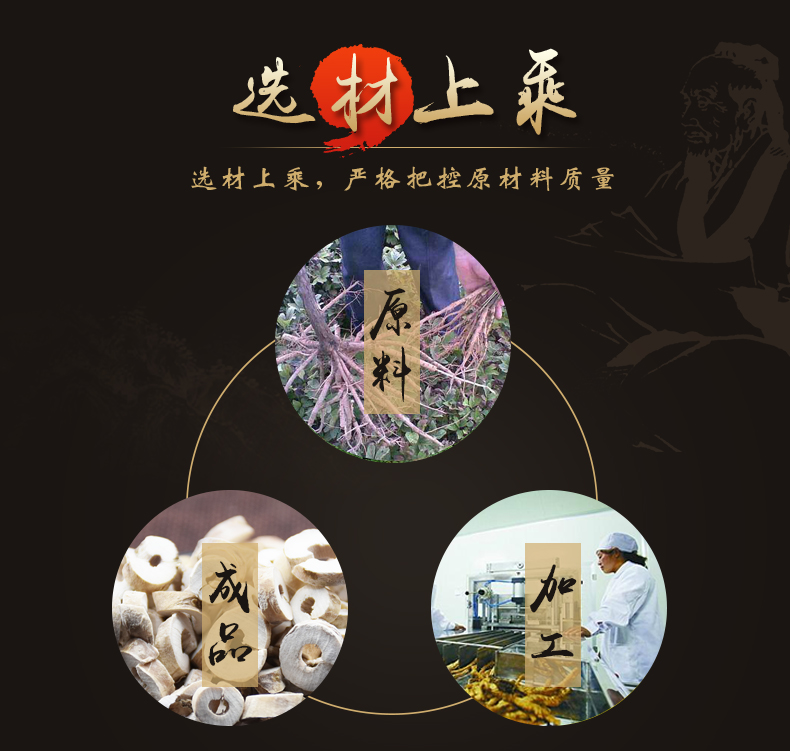 华珍品 本着"地道药材、源于自然、造福人民"的宗旨,严格执行中药材管理规范,以确保中药材质量。