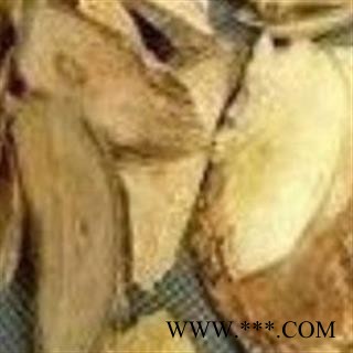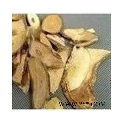 【药材性状】 本品呈圆柱形,直径1~2.5cm,表面灰黄色,有细小的不规则纵皱纹,外皮常呈片状剥落,剥落处显红棕色。质硬,断面皮部红棕色,木部黄白色,可见细孔状导管,射线呈放射状排列,断面中央有一白色柔软的髓部。气微,味微涩。