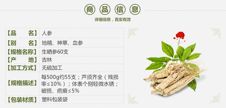 本网页所展示的有关【【满298元包邮】人参生晒参60支 500克1袋_人参_良药堂药材批发超市】的信息/图片/参数等由医导网的会员【良药堂药材批发超市】提供,由医导网会员【良药堂药材批发超市】自行对信息/图片/参数等的真实性、准确性和合法性负责,本平台(本网站)仅提供展示服务,请谨慎交易,因交易而产生的法律关系及法律纠纷由您自行协商解决,本平台(本网站)对此不承担任何责任。您在本网页可以浏览【【满298元包邮】人参生晒参60支 500克1袋_人参_良药堂药材批发超市】有关的信息/图片/价格等及提供【【满298元包邮】人参生晒参60支 500克1袋_人参_良药堂药材批发超市】的商家公司简介、联系方式等信息。