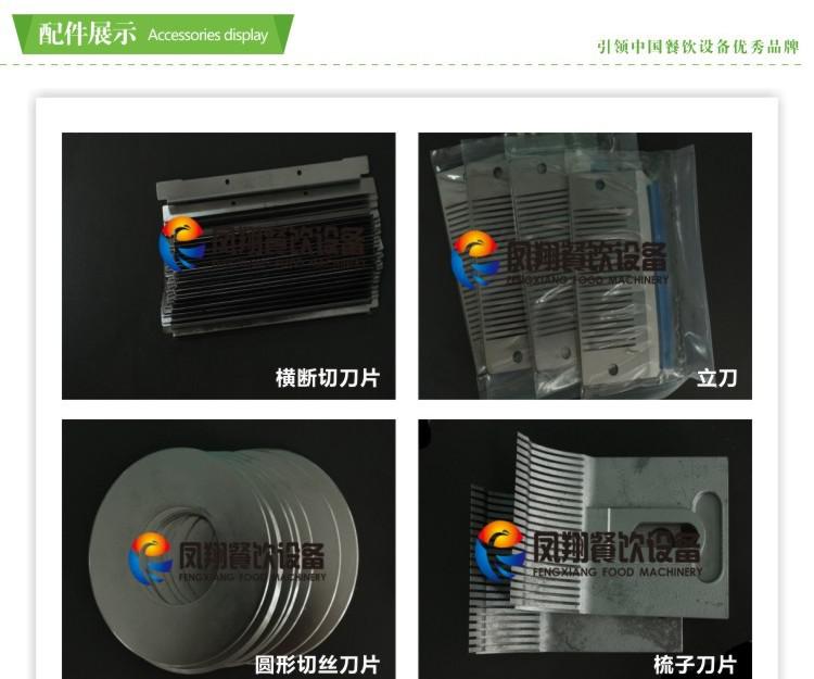 特性:将萝卜、马铃薯、芋头、蕃薯、瓜果类、洋葱、青椒、芒果、凤梨、苹果、火腿、魔芋、木瓜、竹笋等切丁,或者长条。切面光滑美观。 *机台骨架均为SUS304不锈钢制做,耐腐蚀。