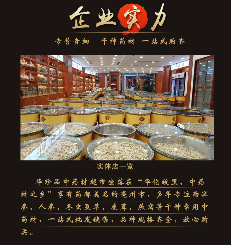 华珍品 本着"地道药材、源于自然、造福人民"的宗旨,严格执行中药材管理规范,以确保中药材质量。