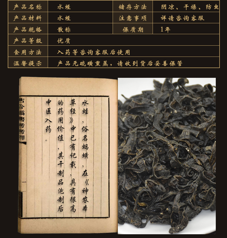 规格等级:01 东北野生小水蛭 统