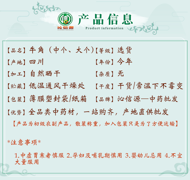 本网页所展示的有关【【满包邮】牛角中个、大个 个子选货散装四川产地直供水牛角沁信源中药批发_动物类_四川沁信源商贸有限公司】的信息/图片/参数等由医导网的会员【四川沁信源商贸有限公司】提供,由医导网会员【四川沁信源商贸有限公司】自行对信息/图片/参数等的真实性、准确性和合法性负责,本平台(本网站)仅提供展示服务,请谨慎交易,因交易而产生的法律关系及法律纠纷由您自行协商解决,本平台(本网站)对此不承担任何责任。您在本网页可以浏览【【满包邮】牛角中个、大个 个子选货散装四川产地直供水牛角沁信源中药批发_动物类_四川沁信源商贸有限公司】有关的信息/图片/价格等及提供【【满包邮】牛角中个、大个 个子选货散装四川产地直供水牛角沁信源中药批发_动物类_四川沁信源商贸有限公司】的商家公司简介、联系方式等信息。