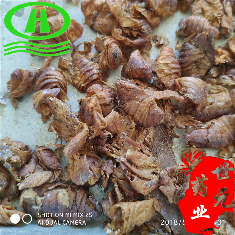 【性 状】黄褐色薄膜,形态不规则,体轻易碎,一般情况下杂质较多,是蚕蛹脱落物非蚕蛹