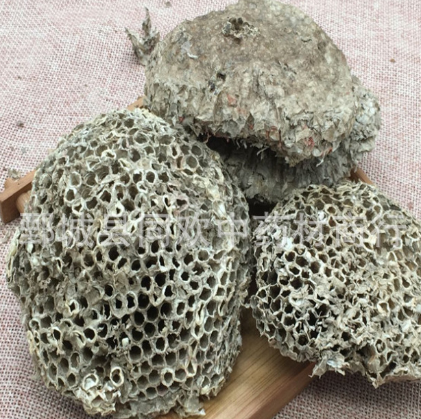 【性状颜色】:本品呈圆盘状或不规则的扁块状,有的似莲房状,大小不一。表面灰白色或灰褐色。腹面有多数整齐的六角形房孔,孔径3~4mm或6~8mm;背面有1 个或数个黑色短柄。体轻,质韧,略有弹性。气微,味辛淡。不规则块状
