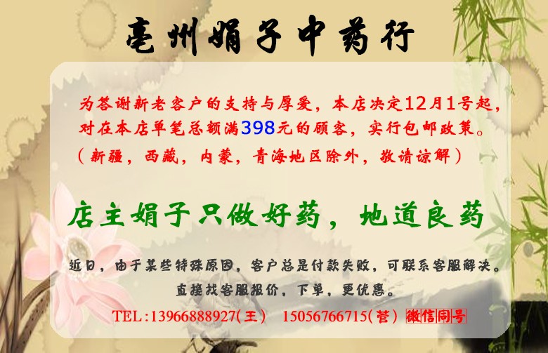 【店主承诺】:本店所销售的药材均是无硫优质药材,请大家放心购买。盗图可耻,违法必究,谢谢合作。