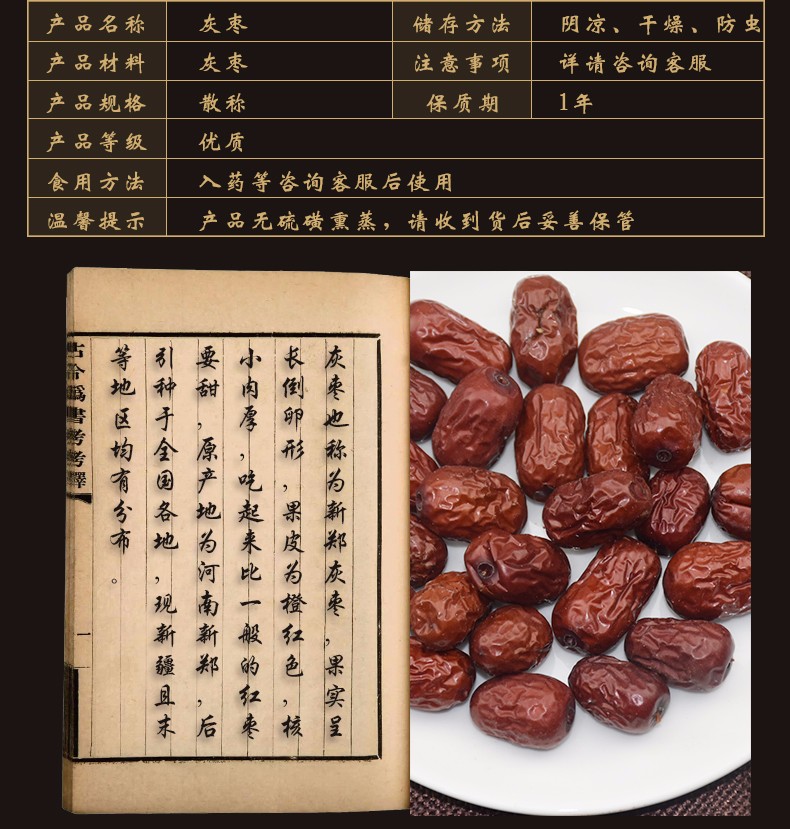 华珍品中药材超市 红枣 04 食用灰枣 小号 产地 新疆维吾尔自治区