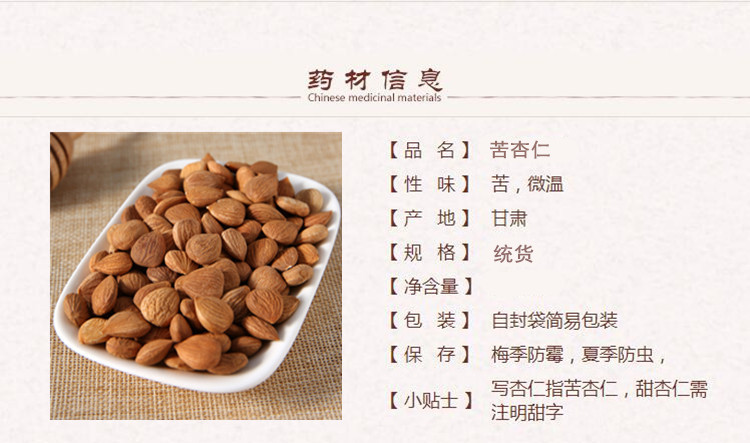 本网页所展示的有关【苦杏仁苦杏仁统货 药典正品 中药材 瑞芝堂产地直供1000克 规格齐全 一站购齐_苦杏仁_瑞芝堂中药世家】的信息/图片/参数等由医导网的会员【瑞芝堂中药世家】提供,由医导网会员【瑞芝堂中药世家】自行对信息/图片/参数等的真实性、准确性和合法性负责,本平台(本网站)仅提供展示服务,请谨慎交易,因交易而产生的法律关系及法律纠纷由您自行协商解决,本平台(本网站)对此不承担任何责任。您在本网页可以浏览【苦杏仁苦杏仁统货 药典正品 中药材 瑞芝堂产地直供1000克 规格齐全 一站购齐_苦杏仁_瑞芝堂中药世家】有关的信息/图片/价格等及提供【苦杏仁苦杏仁统货 药典正品 中药材 瑞芝堂产地直供1000克 规格齐全 一站购齐_苦杏仁_瑞芝堂中药世家】的商家公司简介、联系方式等信息。