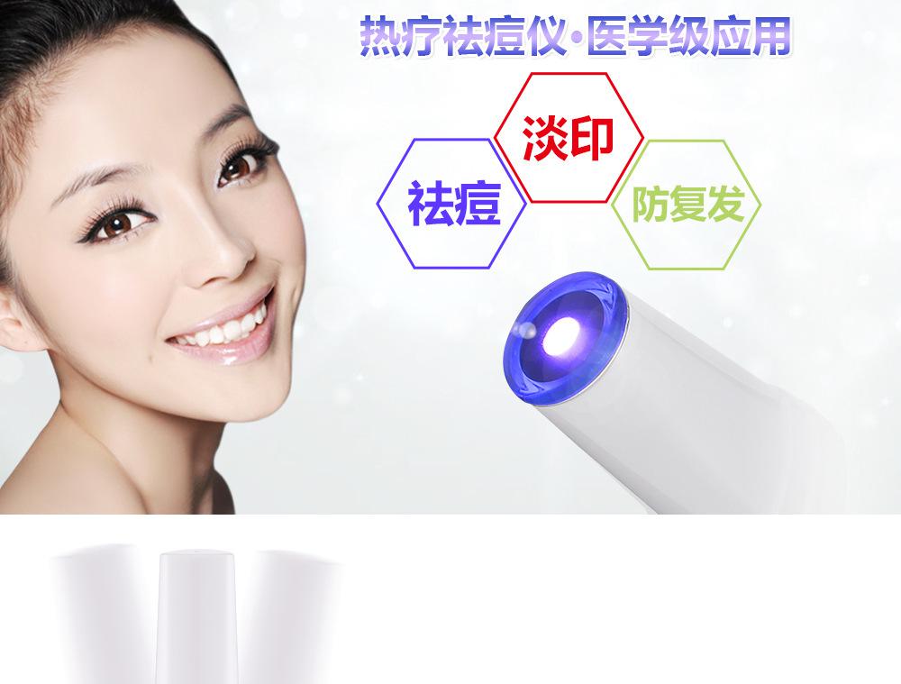 1. 长按按键3秒开机,开机后指示灯会亮起,待约10秒钟(根据环境温度变化会有少许差别)机器喇叭提醒完成预热, 2. 再按开关件,治疗头亮蓝紫光,此时可以将治疗头对准青春痘微压并保持治疗头一直在相同位置。 3. 2分45秒以后喇叭提醒当此治疗完毕。再按按键恢复蓝紫光后再进行对第二个青春痘的治疗。 4. 蓝紫光治疗完毕后,使用者可以有选择性使用红光或者绿光进行预防痘印和抑制皮脂腺分泌治疗。使用红光时治疗头轻轻接触皮肤即可,使用绿光是本机器不发热,使光源靠近治疗位置即可,不需接触皮肤。 5. 使用完毕后长按按键3秒关机,然后用干净棉花蘸清水或者酒精消毒,盖好保护盖即可。 6. 每隔8-12小时治疗一次,使用2-3天,中轻度的痘痘可以基本消除。如果还有痘印留下可以用红色光继续照射,痘印会慢慢变淡。 7.油性皮肤的使用者可以经常使用黄绿光照射,以减少皮脂分泌,和收缩皮肤毛孔。 |