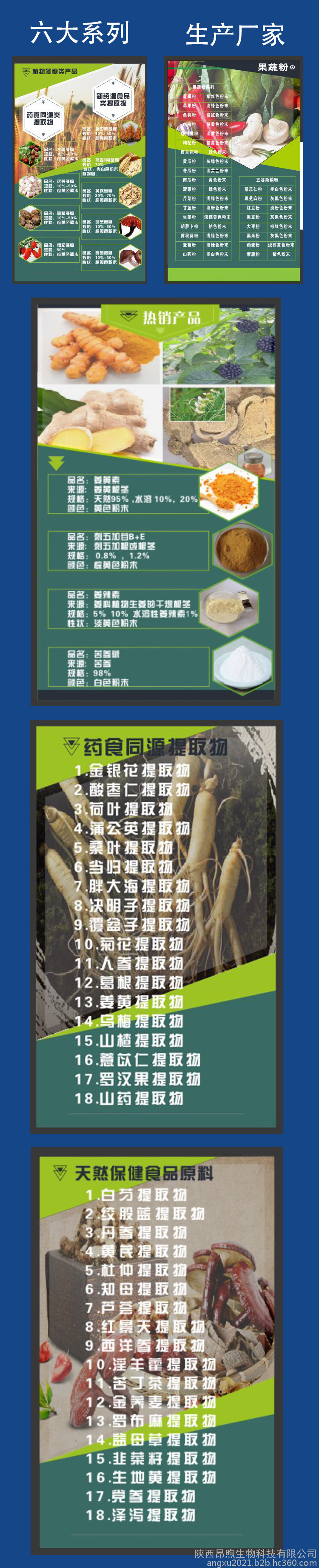 【应用领域】:功能性食品原料、固体饮料、代餐粉、植物源农药、化妆品、兽药饲料添加剂等。