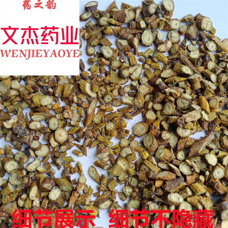 [性 状]:该品呈近圆柱形,微扭曲,向下略细或有少数分枝,长30~60cm,直径0.5~3cm。表面黄棕色或灰褐色,具纵皱纹、支根痕和多数横向突起的皮孔。质韧,不易折断,断面浅黄色或棕黄色,维管束点状,排列成数轮同心环。气微,味甜。