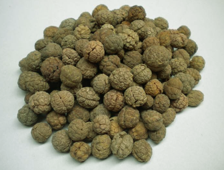 【性 状】:商品呈三角状圆球形,棕色或灰绿色,气微香;