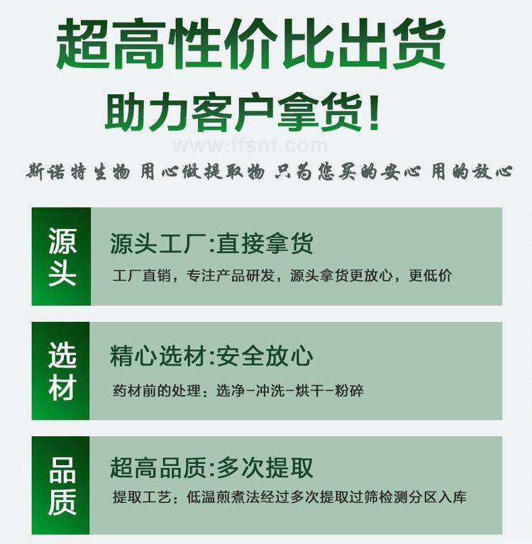 我厂大量生产提取物原料,采用高质量原材料进行生产。每个生产流程都严格把控,再确保每样产品都是合格后,方可