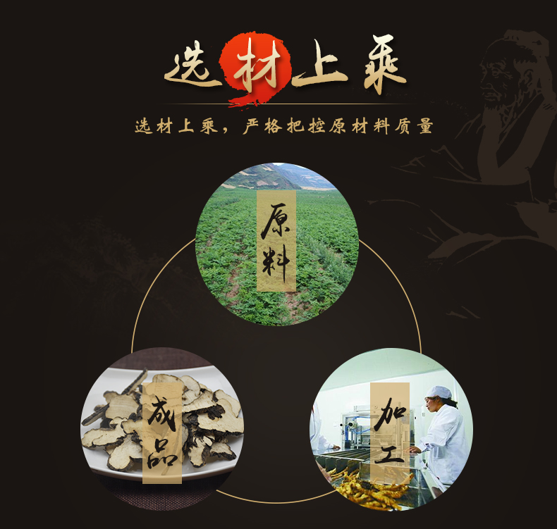 华珍品 本着"地道药材、源于自然、造福人民"的宗旨,严格执行中药材管理规范,以确保中药材质量。