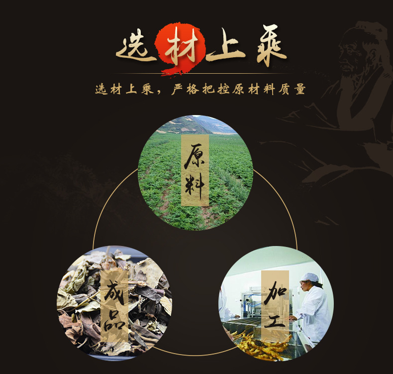 华珍品 本着"地道药材、源于自然、造福人民"的宗旨,严格执行中药材管理规范,以确保中药材质量。