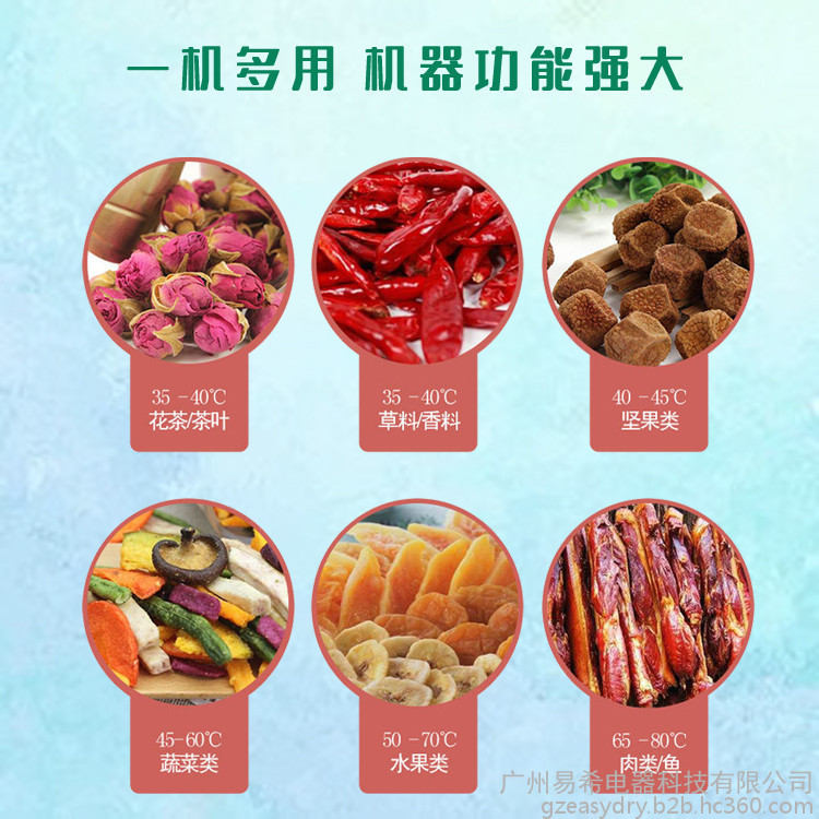 | 适用范围 | 灵芝烘干机,腊味,肉类,海鲜,农副产品,药材 |