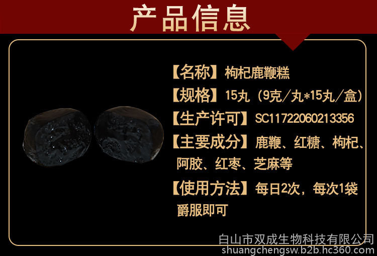 本网页所展示的有关【双成 枸杞鹿鞭糕135g滋补调理东北特产高纯度鹿鞭片厂直销男士高纯度鹿鞭膏男用滋补膏250克长白山双阳非鹿茸人参纯手工丸_鹿茸_白山市双成生物科技有限公司】的信息/图片/参数等由医导网的会员【白山市双成生物科技有限公司】提供,由医导网会员【白山市双成生物科技有限公司】自行对信息/图片/参数等的真实性、准确性和合法性负责,本平台(本网站)仅提供展示服务,请谨慎交易,因交易而产生的法律关系及法律纠纷由您自行协商解决,本平台(本网站)对此不承担任何责任。您在本网页可以浏览【双成 枸杞鹿鞭糕135g滋补调理东北特产高纯度鹿鞭片厂直销男士高纯度鹿鞭膏男用滋补膏250克长白山双阳非鹿茸人参纯手工丸_鹿茸_白山市双成生物科技有限公司】有关的信息/图片/价格等及提供【双成 枸杞鹿鞭糕135g滋补调理东北特产高纯度鹿鞭片厂直销男士高纯度鹿鞭膏男用滋补膏250克长白山双阳非鹿茸人参纯手工丸_鹿茸_白山市双成生物科技有限公司】的商家公司简介、联系方式等信息。