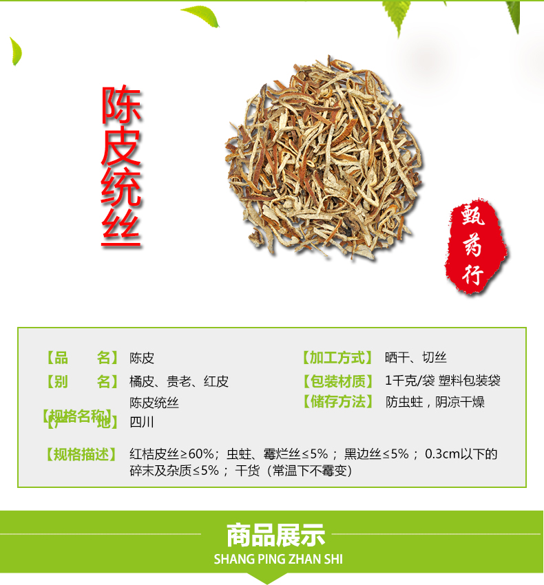 本网页所展示的有关【陈皮 统丝 产地 四川省 1公斤装_陈皮_甄选药材行】的信息/图片/参数等由医导网的会员【甄选药材行】提供,由医导网会员【甄选药材行】自行对信息/图片/参数等的真实性、准确性和合法性负责,本平台(本网站)仅提供展示服务,请谨慎交易,因交易而产生的法律关系及法律纠纷由您自行协商解决,本平台(本网站)对此不承担任何责任。您在本网页可以浏览【陈皮 统丝 产地 四川省 1公斤装_陈皮_甄选药材行】有关的信息/图片/价格等及提供【陈皮 统丝 产地 四川省 1公斤装_陈皮_甄选药材行】的商家公司简介、联系方式等信息。