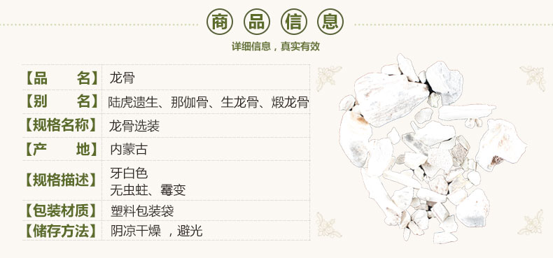 本网页所展示的有关【【满298元包邮】龙骨 龙骨水洗选装 产地 内蒙古自治区 1公斤1袋_龙骨_良药堂药材批发超市】的信息/图片/参数等由医导网的会员【良药堂药材批发超市】提供,由医导网会员【良药堂药材批发超市】自行对信息/图片/参数等的真实性、准确性和合法性负责,本平台(本网站)仅提供展示服务,请谨慎交易,因交易而产生的法律关系及法律纠纷由您自行协商解决,本平台(本网站)对此不承担任何责任。您在本网页可以浏览【【满298元包邮】龙骨 龙骨水洗选装 产地 内蒙古自治区 1公斤1袋_龙骨_良药堂药材批发超市】有关的信息/图片/价格等及提供【【满298元包邮】龙骨 龙骨水洗选装 产地 内蒙古自治区 1公斤1袋_龙骨_良药堂药材批发超市】的商家公司简介、联系方式等信息。